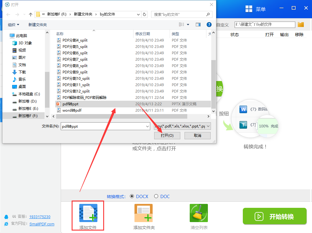 2、然后点击左下角的“添加文件”添加需要转换的ppt演示文稿。