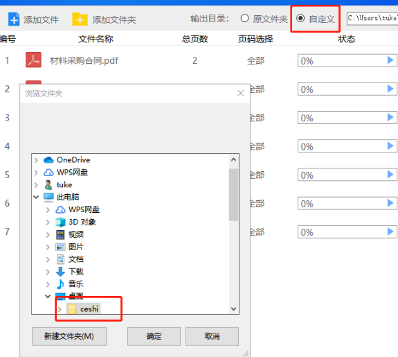 3.文件添加完之后,在pdf转换器右上区域,选择合并后PDF文件的保存路径。当然啦,最好选择英文路径下进行保存,也是可以选择原文件路径的。