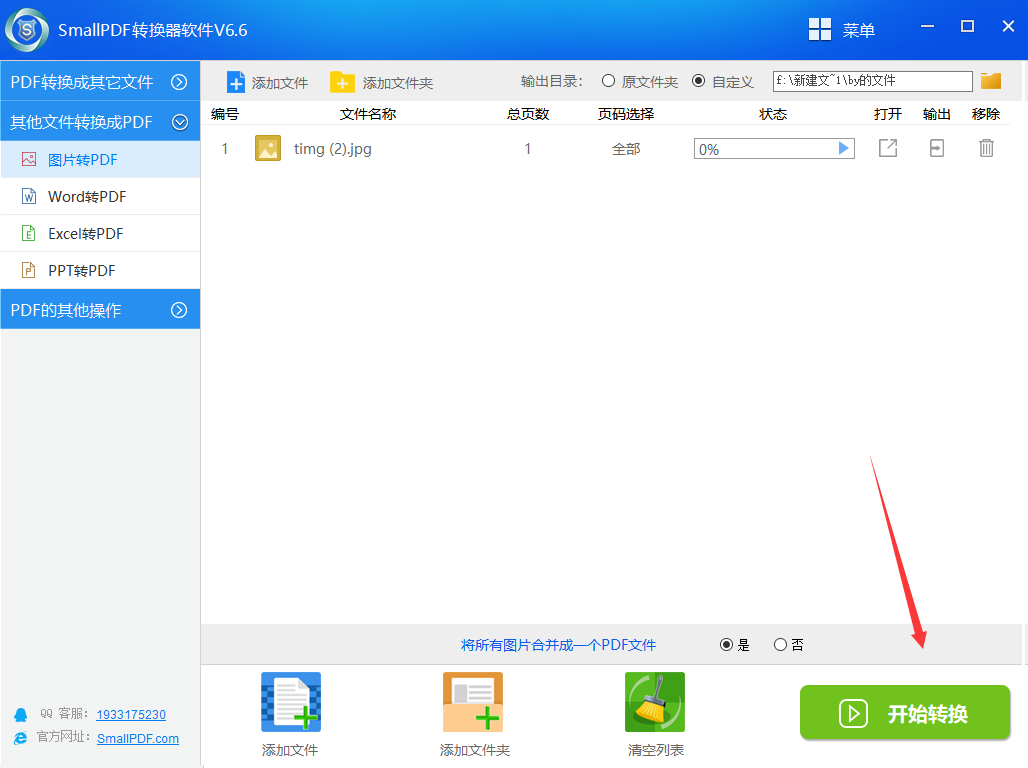 4、以上准备工作做好后就开始最后一步的转换吧,点击界面右下角的“开始转换”就可以一键将我们的图片转换成pdf文件啦!